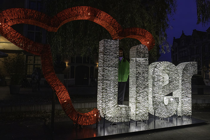 Lier, 22 november 2023: Aan de verlaagde kade op het Felix Timmermansplein onthulden burgemeester Rik Verwaest en schepen van toerisme Ilse Lambrechts een nieuwe opvallende lichtstructuur. Deze ... meer