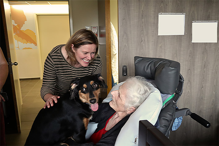 Lier, 17 november 2023: Bewoners van het woonzorgcentrum Paradijs worden wekelijks verwend met een bezoek van een aai-hond - een opgeleide therapiehond - voor een gezellige knuffelsessie of ... meer