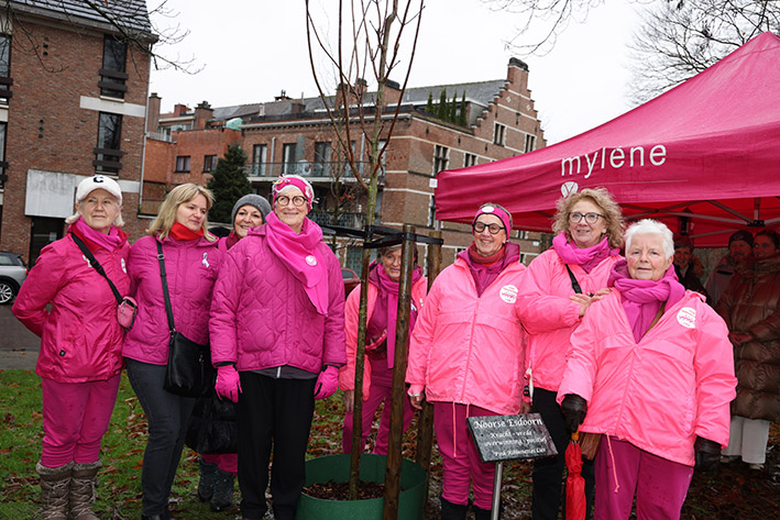 Lier, 9 december 2023: De Pink Ribbonnettes Lier schenken een boom, een Noorse esdoorn, aan de stad Lier. Deze boom werd geplant op de Sionsvest zowat vijftig meter voorbij het Spui. ... meer